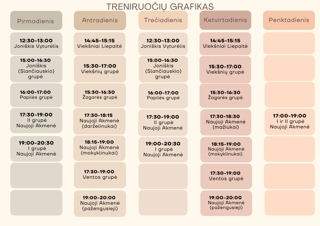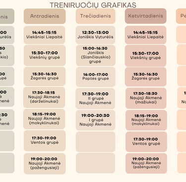 Treniruotės vyksta 2 - 3 kartus per savaitę.